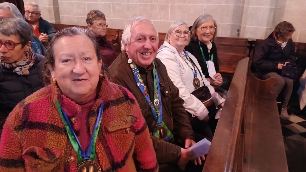 Nous avons été accueillis par un petit déjeuner « salé-sucré » gigantesque et nous nous sommes rendus à pied à l’Église de Souvret, place Lagneau où ont eu lieu le chapitre et les intronisations, à cette occasion notre consœur Catherine Cotteret e été intronisée.