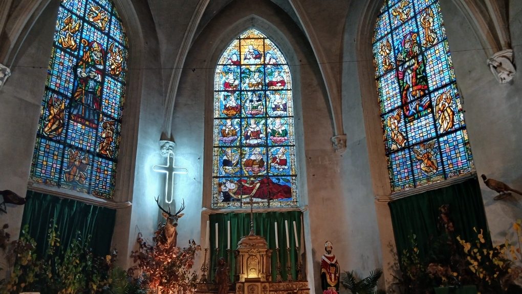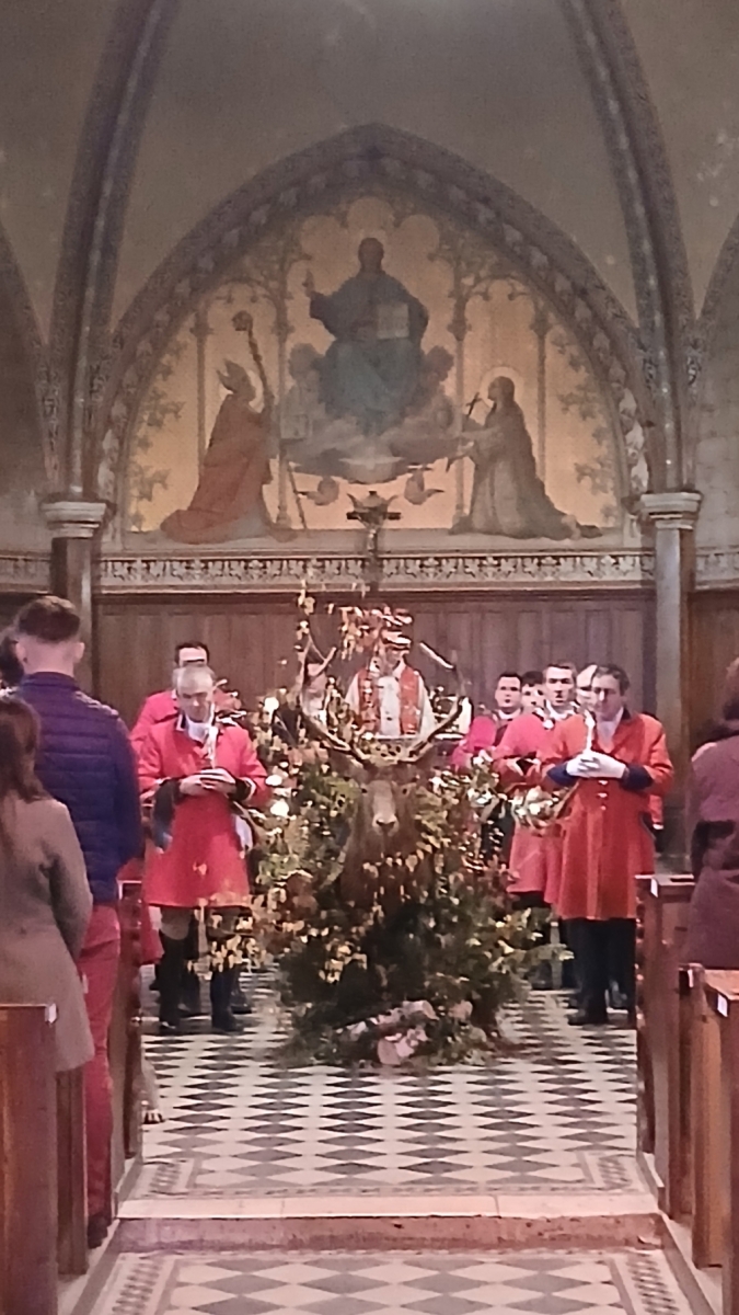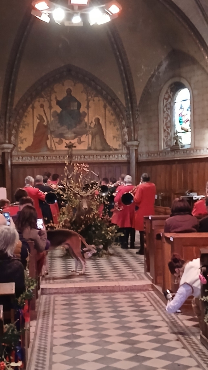 Après la mise en habit, nous avons défilé en ville puis nous nous sommes dirigés vers l’église St YTHIER, pour participer à une messe de Saint Hubert, accompagnés des cors de chasse « les Echos de Chamerolles ».
