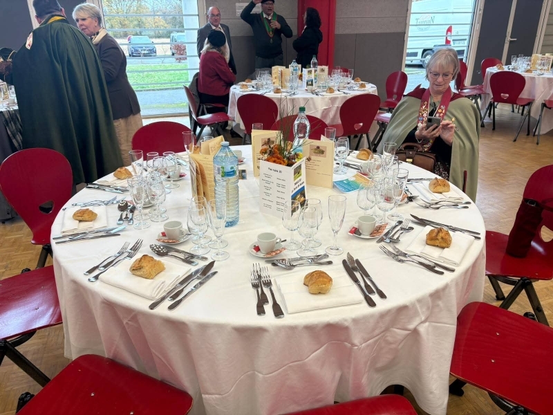 Nous avons été accueillis pour le petit déjeuner au complexe sportif, puis nous avons assisté aux agapes ou notre consœur Annick a été intronisée.