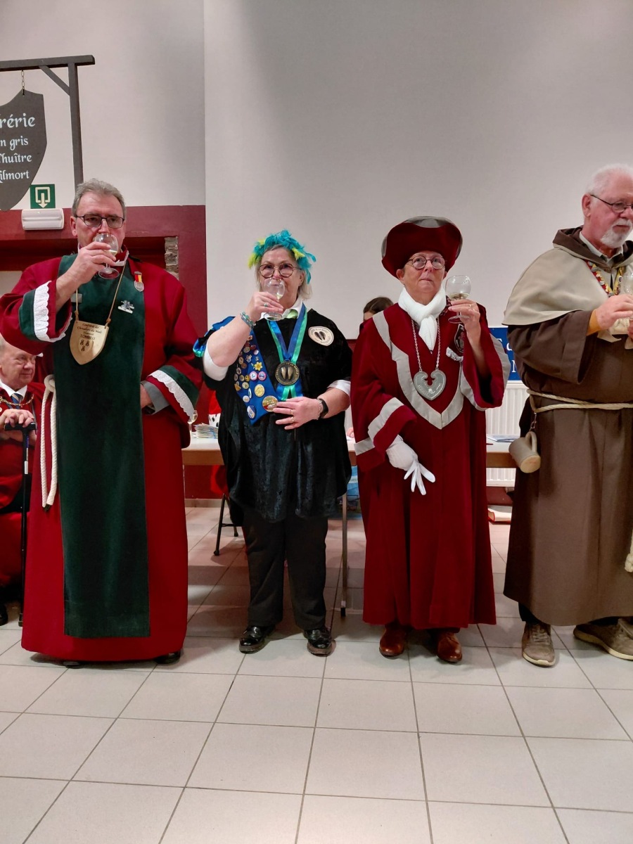 Nous avons été accueillis par un petit déjeuner, puis nous nous sommes mis en habit pour les intronisations. Notre consœur Catherine Coteret a été intronisée. Après les cérémonies nous avons pris le pot de l’amitié.