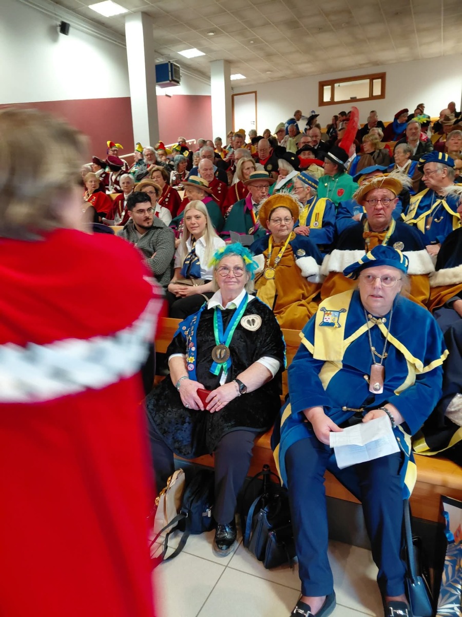 Après la mise en habit nous sommes partis en cortège vers la salle Dueberg du cinéma ou nous avons assisté au chapitre au cours duquel notre confrère Alain a été intronisé.