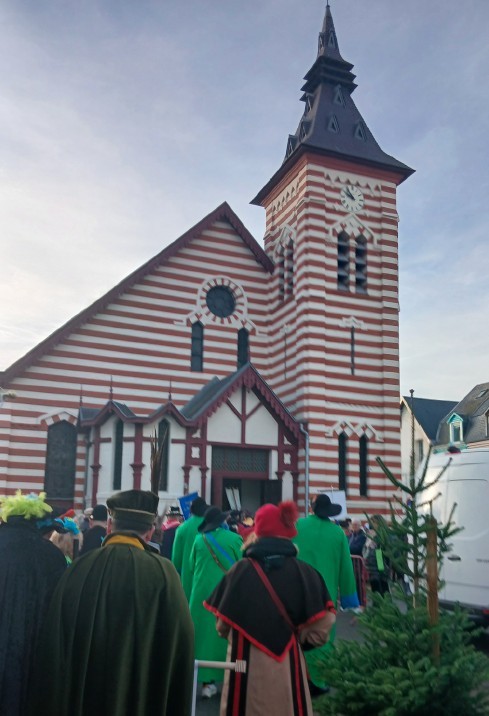 Nous avons été accueillis à la maison du marais par un petit déjeuner et nous sommes partis en barque “le bacove” pour une ballade dans les marais. Ensuite en tenue, sommes partis pour le défilé en passant par le jardin public et le marché pour nous rendre à la basilique de Saint Omer pour la cérémonie religieuse.