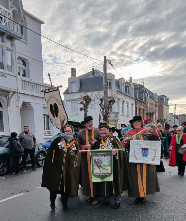 La confrérie de la Moule de Bouchot de Fort-Mahon-Plage a participé au 34 ème chapitre du Hareng Côtier de Berck Sur Mer le samedi 30/11/2024, où 39 confréries avaient été invitées.Après un petit déjeuner copieux pris chez Mireille nous nous sommes rendus en bus à l’hôtel de ville pour la traditionnelle photo des confréries.Puis nous avons participé à la célébration en l’église Saint Jean Baptiste de Berck ville.Puis nous nous sommes rendus à la médiathèque pour défiler dans les rues, et terminer au Kursaall pour les intronisations ou deux de nos confrères ont été intronisés ; Annick Stankièwicz et Derreux Gérard. Un vin d’honneur nous a été offert par la municipalité en présence de Monsieur Cousin maire de Berck.Puis retour chez Mireille ou nous avons assisté au repas de gala avec animation ou chacun a pu se défouler sur la piste de danse.Nous avons terminé cette journée par la traditionnelle soupe à l’oignon.