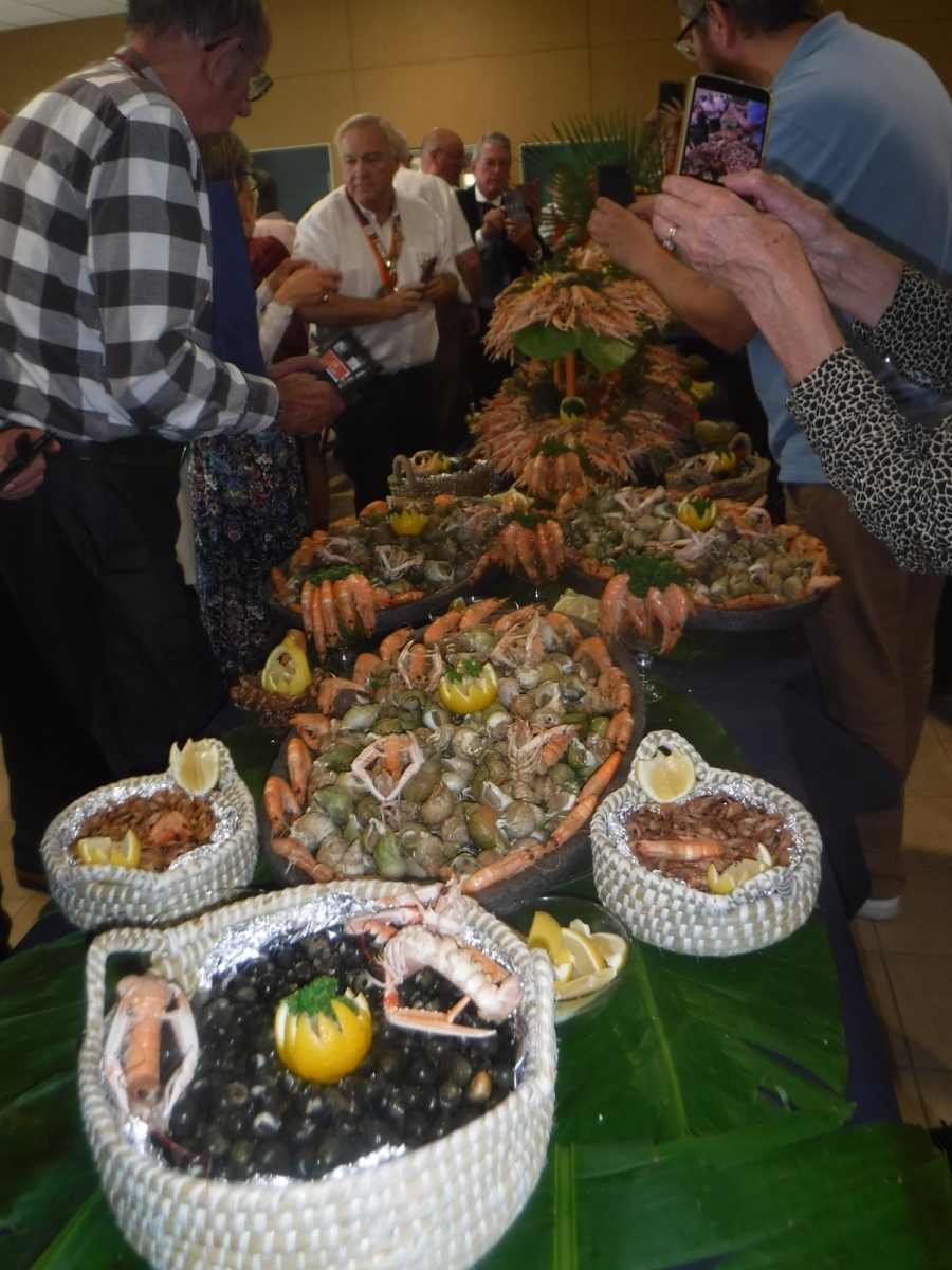 Puis retour à la salle Petit Breton pour le repas de gala, déjeuner buffet spécial fruits de mer, grandiose, dans une ambiance musicale assurée par un DJ,