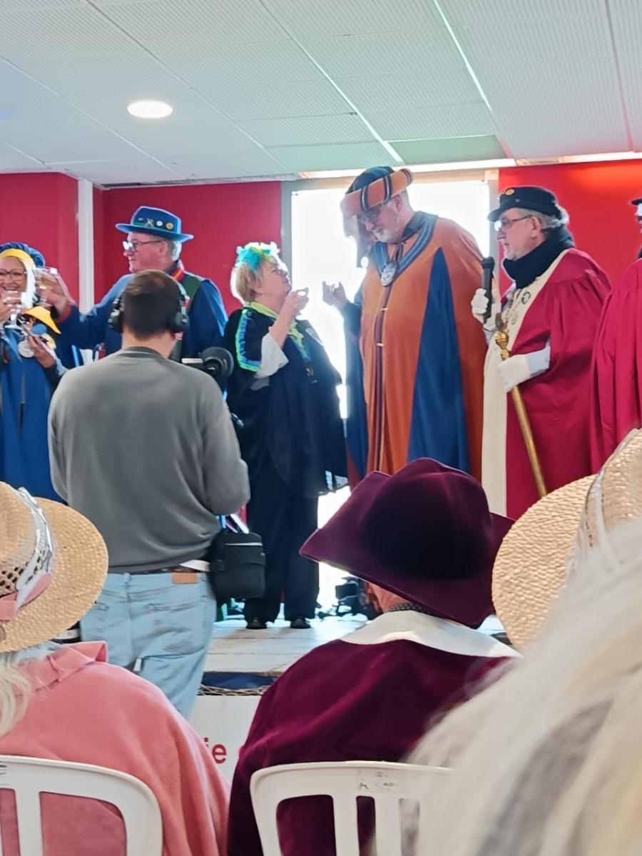 Puis le cortège a descendu l’avenue de la plage au son de la musique du Batukada Kak 40 d’Arras et notre géant Marco était accompagné de 4 géants des Hauts de France. Tout ce petit monde avait rendez-vous à la salle polyvalente pour assister au chapitre au cours duquel 33 confrères ont été intronisés.