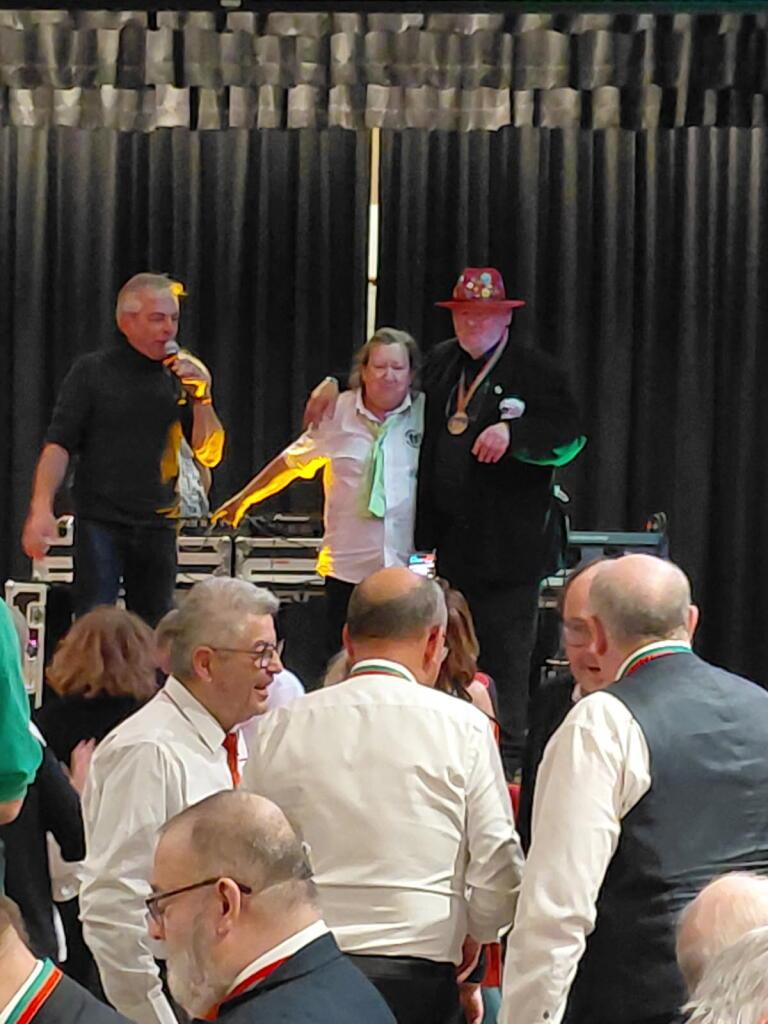 Ensuite nous nous sommes rendus en voiture à la salle de Miaucurt à Courcelles où nous attendaient le pot de l’amitié et un excellent repas raffiné animé par un groupe de musiciens et chanteurs,