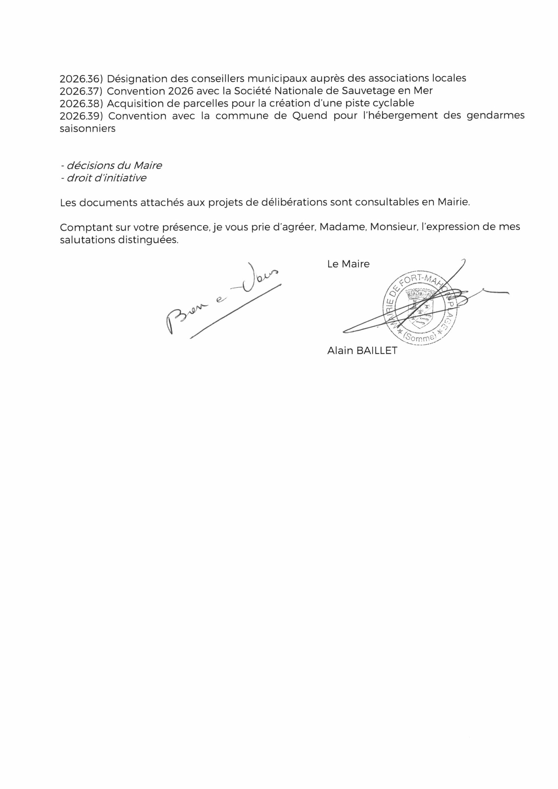 convocation réunion du conseil municipal du 27 mars 2026