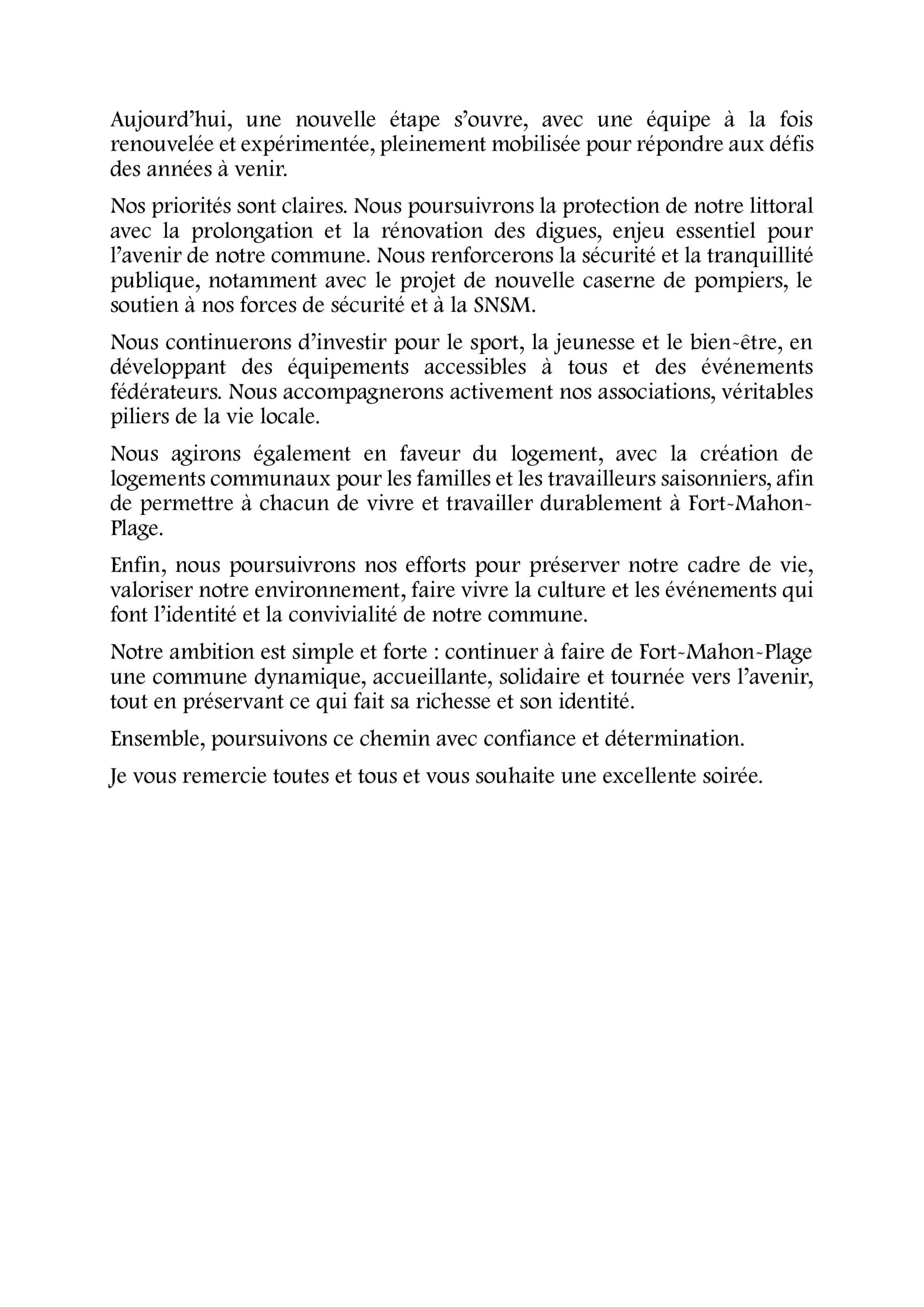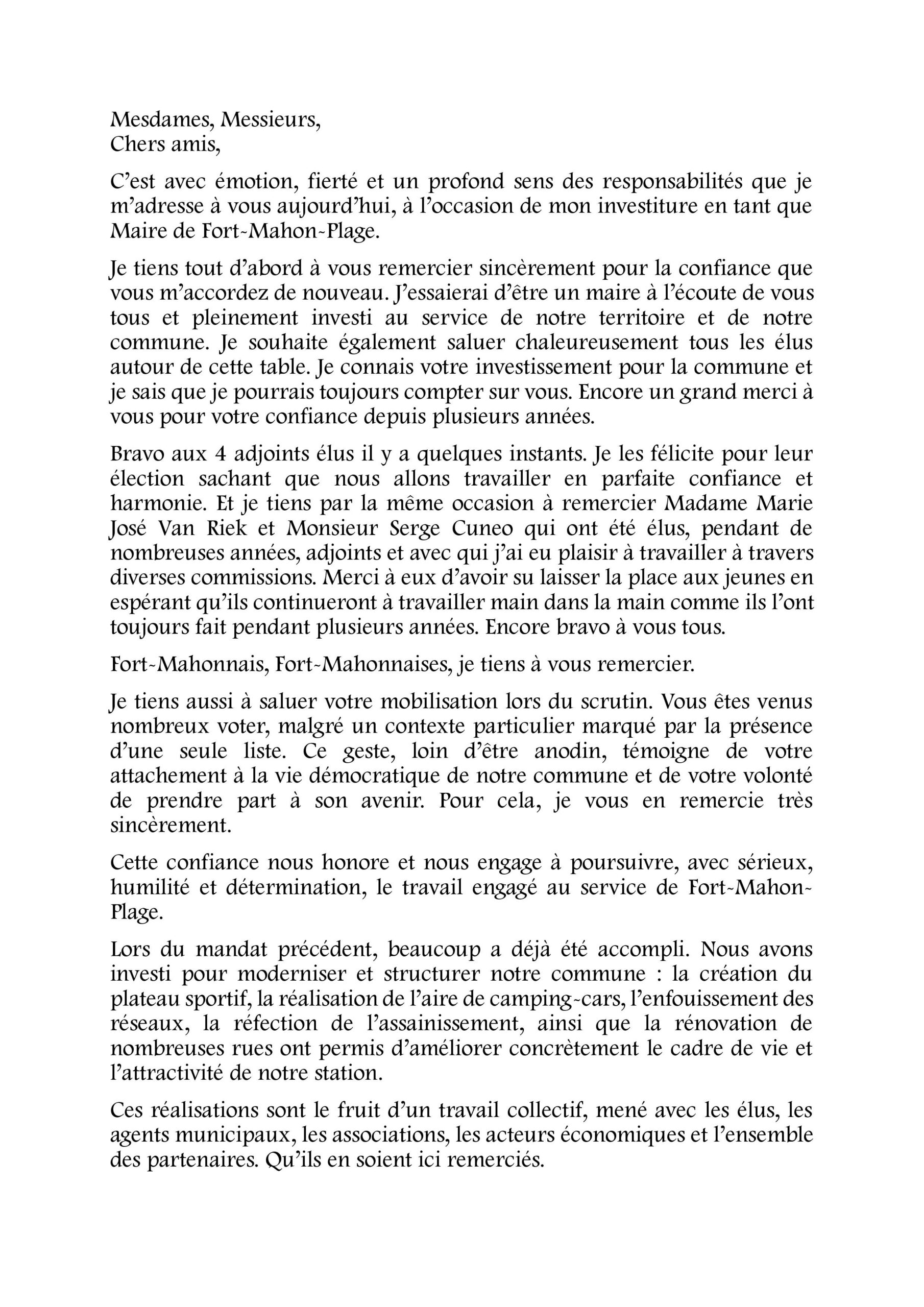 Discours d’investiture de M. Alain Baillet Maire de Fort Mahon Plage